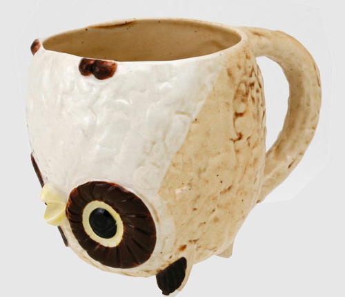 取っ手付きふくろう湯のみ 逆にすると取っ手付きの湯のみになります。